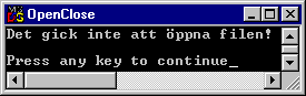 Om operativsystemet av någon anledning inte kan öppna filen kommer vi att få värdet noll i pekaren. Detta måste kollas innan man försöker gå vidare. Gick det inte att öppna filen, ska man naturligtvis inte försöka läsa eller skriva i den.